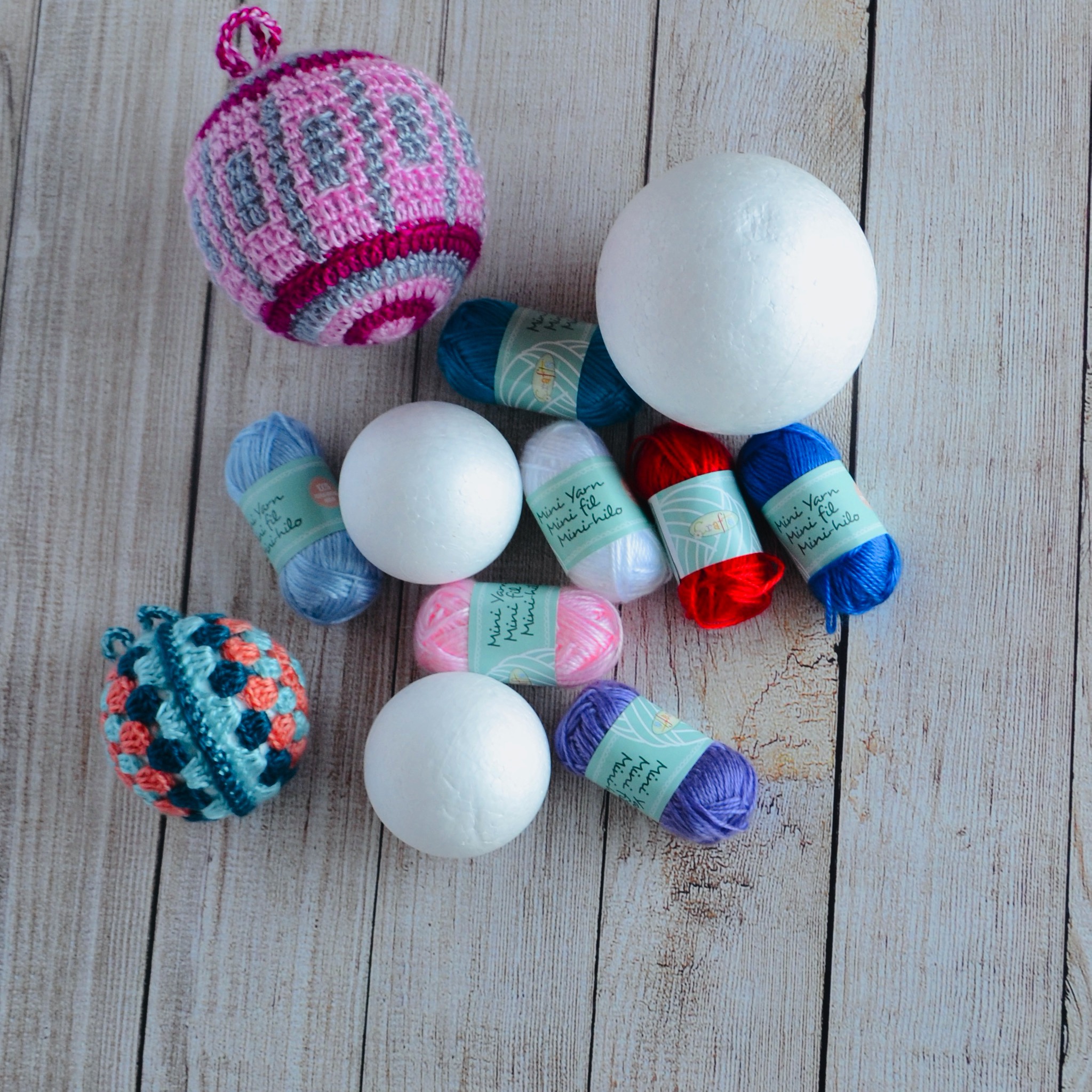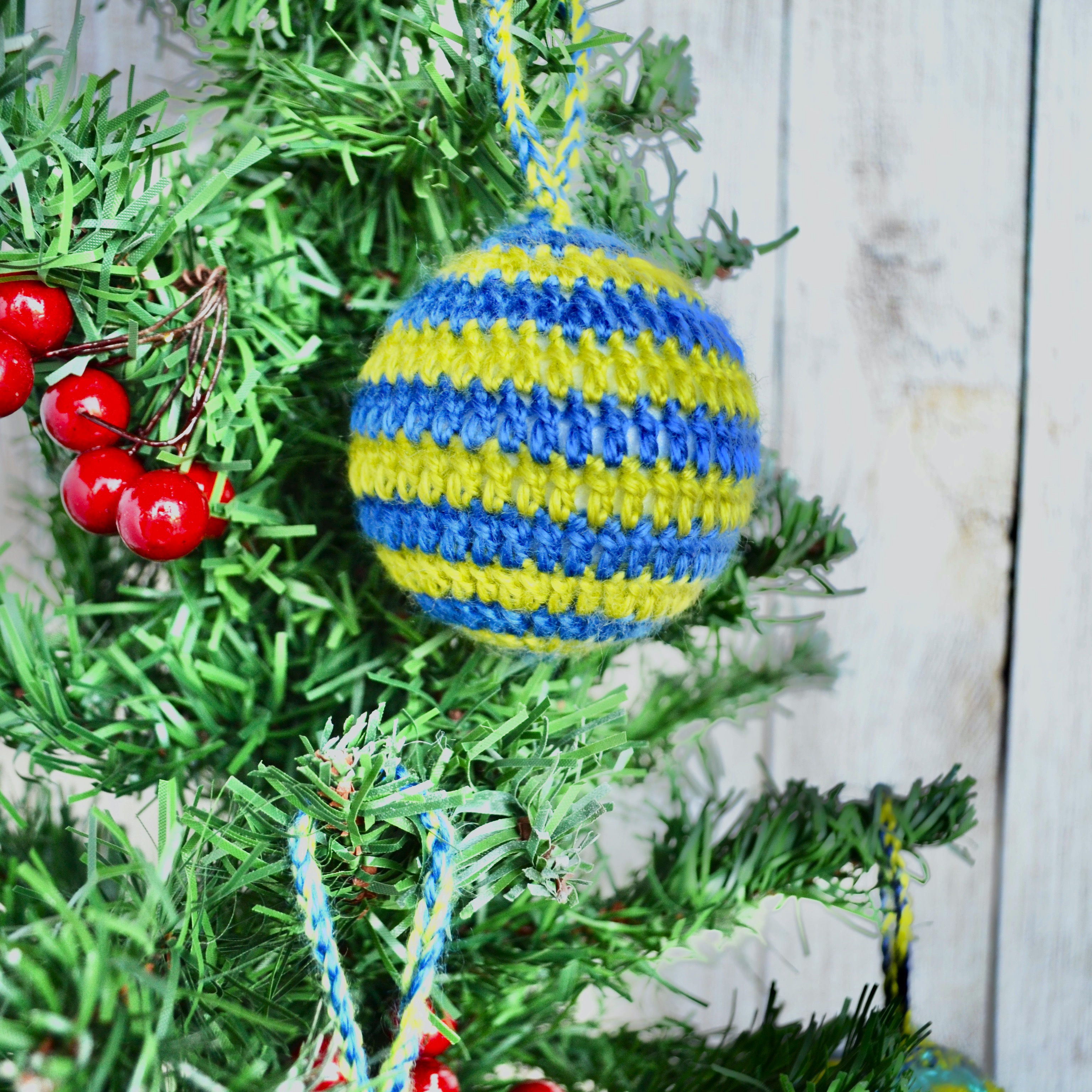 Eh oui, Noël s’en vient. Et en cette année de pandémie 2020, nous commençons plus tôt que d’habitude à décorer nos maisons. Pour agrémenter nos journées sombres de novembre, je vous propose de faire vos propres boules de Noël avec 2 items que l’on trouve facilement au Dollarama. Pour commencer, vous avez de besoin d’un paquet de mini écheveaux d’acrylique, et des boules de polystyrène de 4” et 6”, votre crochet de 3,00 mm et une aiguille. Choisissez la combinaison de couleurs que vous préférez, il n’y a vraiment aucune limite. Ci-bas, les instructions pour la boule à rayures de 4”. Mais, si vous voulez une plus grande variété qui inclus des granny et des mosaïques, cliquez ici, ou allez joindre ma boutique Ravelry pour le patron PDF au complet (version payante en français et en anglais). J’ai fait presqu’une vingtaine de ces boules pour mon sapin cette année et j’ai encore du matériel pour en faire plus. Amusez-vous!