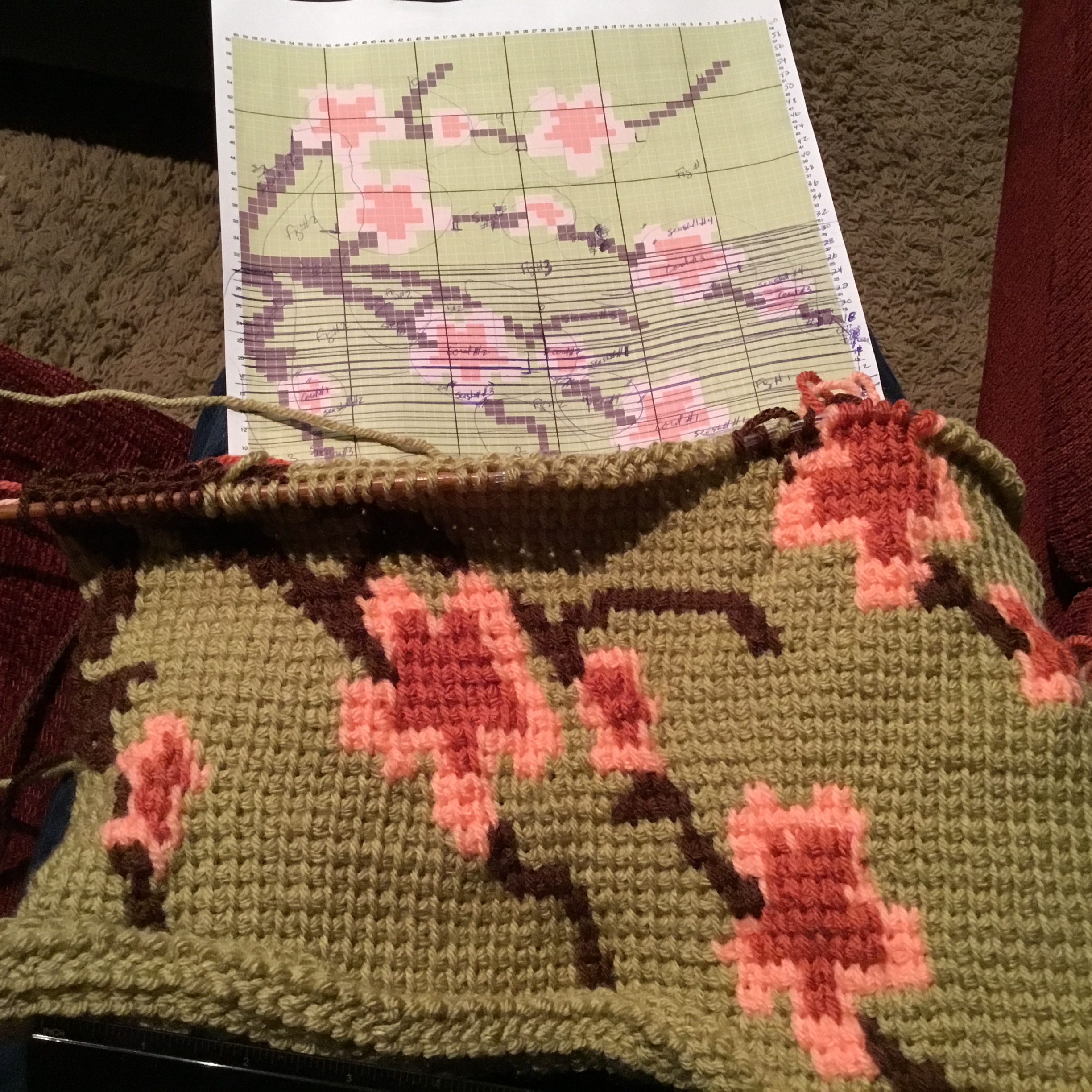 For those used to working with graphghans where there are multitudes of colour changes, whether in Tunisian or any type of crochet method, we are all faced with the inevitable tangling of the yarn. We must then untangle regularly before we can continue any further or else we will go mad! When we use the bobbin method (meaning a multitude of small balls of yarn depending on the complexity of the design), the bobbins can get tangles and spread all over the place. One simple trick is to re-purpose a box and create compartments for each bobbin. When it’s time to untangle, simply shift the bobbins around in the different compartments in the order they will be used for the next row.