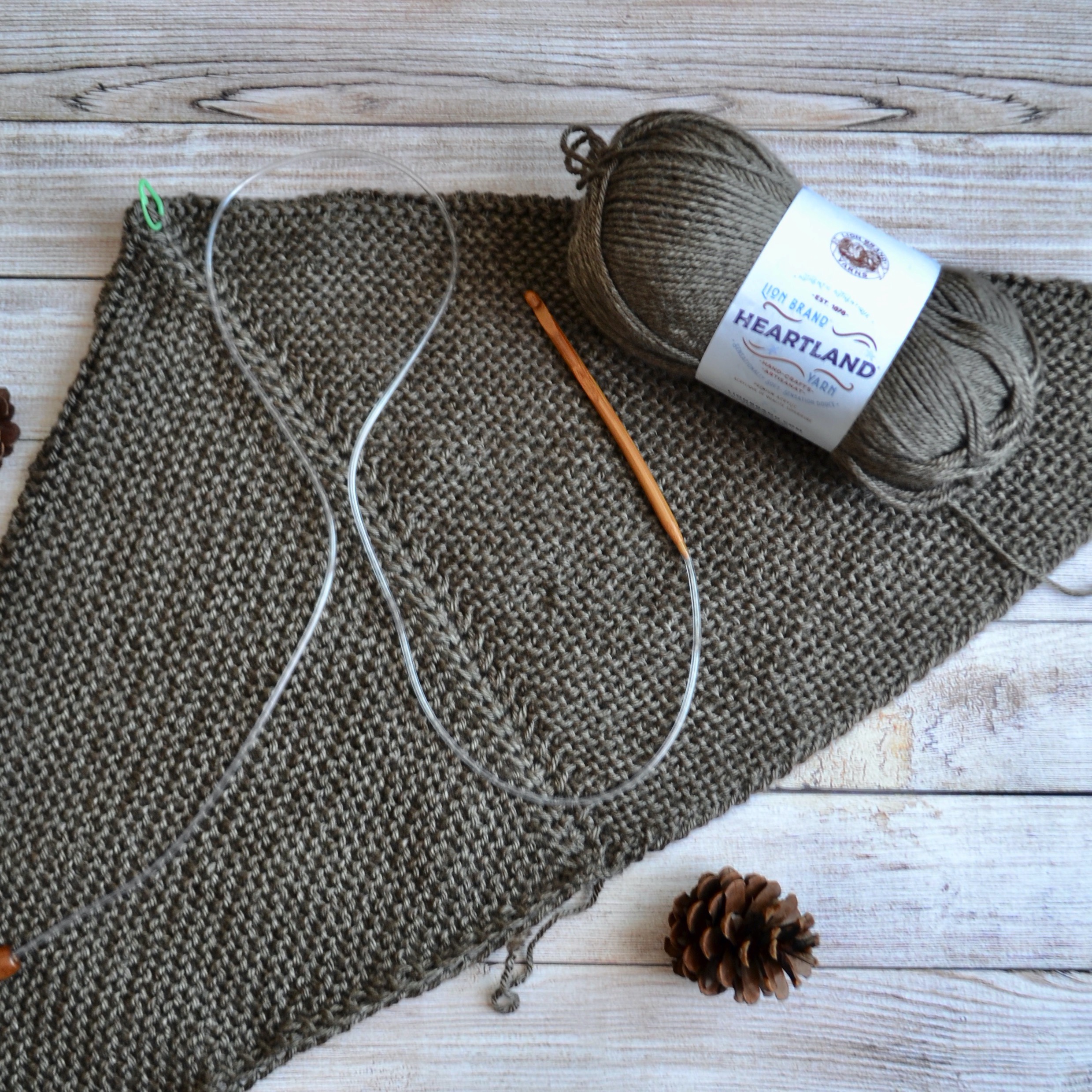 Une connaissance du point Tunisien envers, le point Tunisien simple, et des simples augmentations, sont tout ce qu’il faut pour faire ce châle. Pour les bases du crochet Tunisien, n’hésitez pas à consulter le tuto vidéo ailleurs sur ce blogue (cliquez ici). Vous y apprendrez les points les plus populaires. J’ai utilisé de la Heartland de Lion Brand qui est disponible dans plusieurs magasins de grande surface comme Michaels, ou bien, en ligne sur des sites bien connus.
