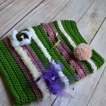 The concept is simple. These muffs are knitted or crocheted with yarns of different colors and textures, and different fidget items are attached (outside and / or inside) to provide a variety of sensory stimulation. They allow people with Alzheimer's or dementia to calm their agitated and busy hands, while keeping them warm if necessary.